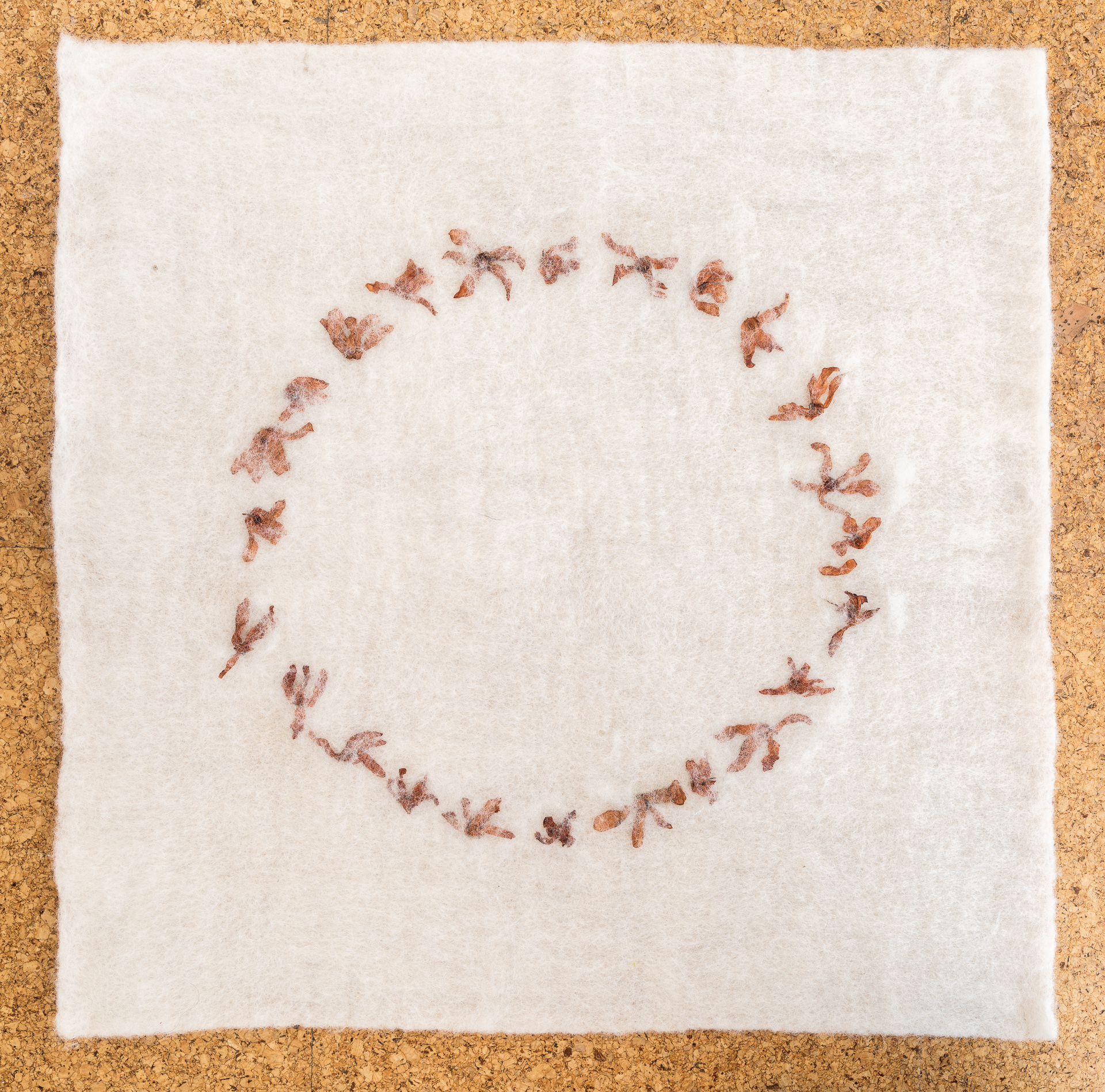 Schließlich gelang es mir, sie einzufilzen. Herausgekommen ist ein Blütenkreis.