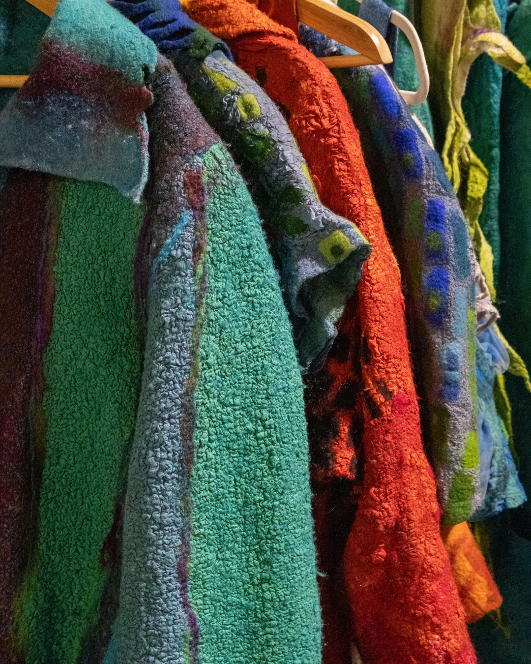 Ein besonderer Höhepunkt war der Samstagabend. In einer Modenschau wurden selbst gefilzte Lieblingsstücke präsentiert. Kleidungsstücke, die über viele Stunden Arbeit entstanden waren, wurden mit Stolz getragen und so sichtbar gemacht. Es ging nicht um Perfektion, sondern um Ausdruck und um den Mut, die eigene Arbeit zu zeigen. Jede Präsentation wurde mit herzlichem Applaus begleitet. In den Gesichtern spiegelten sich Aufregung und Freude.