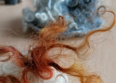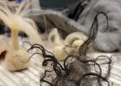 „Silberlocke“ nahm die mineralische Landschaft des Erzgebirges auf. Rohwolllocken und kardierte Wolle verbanden sich zu kleinen dreidimensionalen Schätzen, deren Strukturen an Silberadern erinnerten.