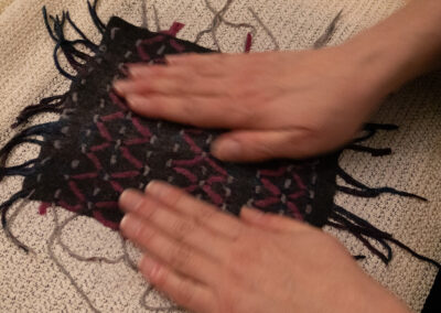 Der Workshop „Bindung“ spürte historischen Textiltechniken nach und erkundete, wie gezielte Verbindungen neue Oberflächen im Filz entstehen lassen.